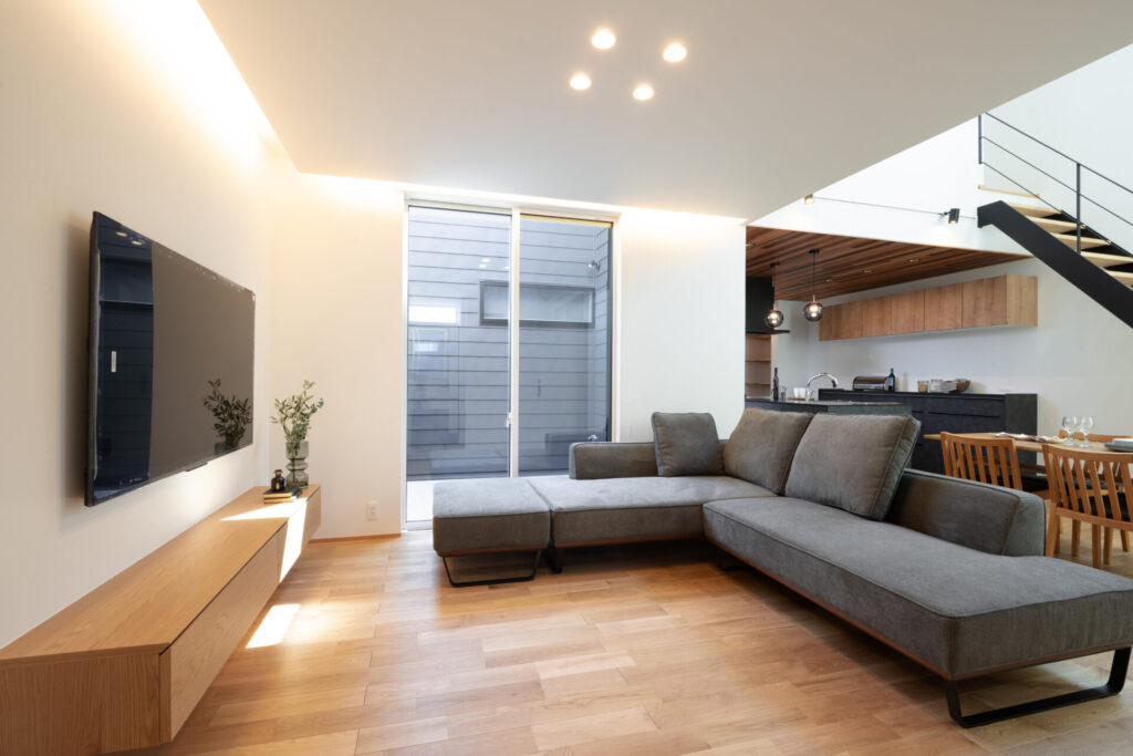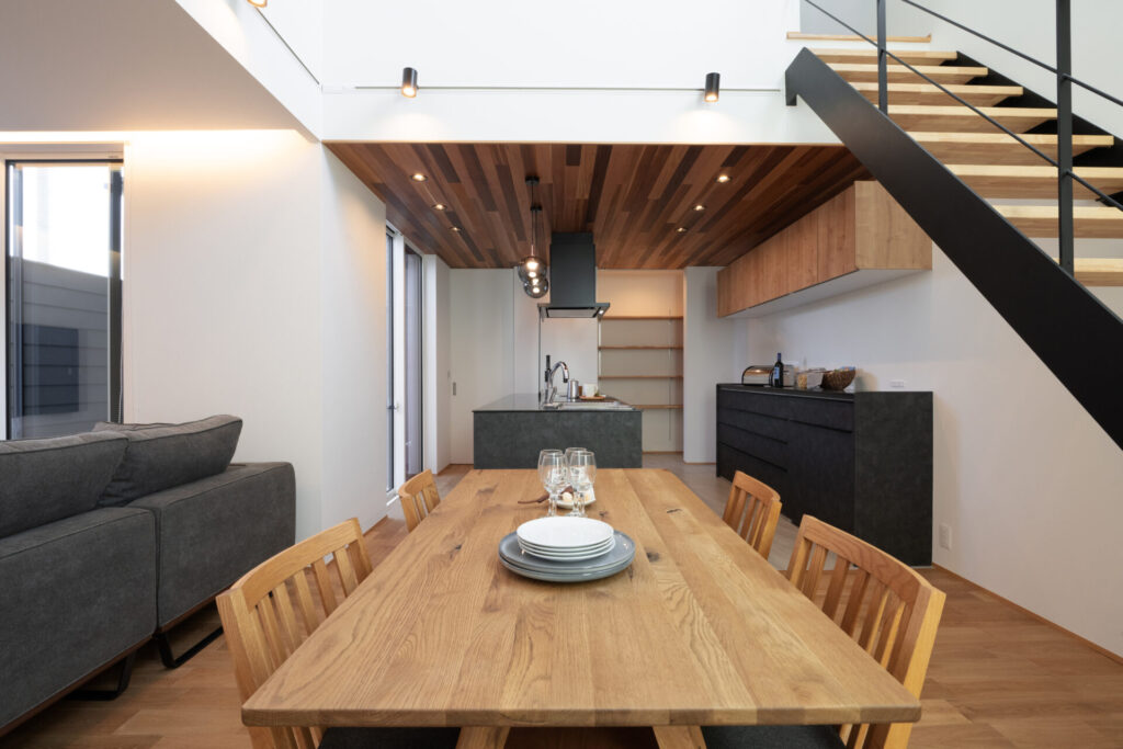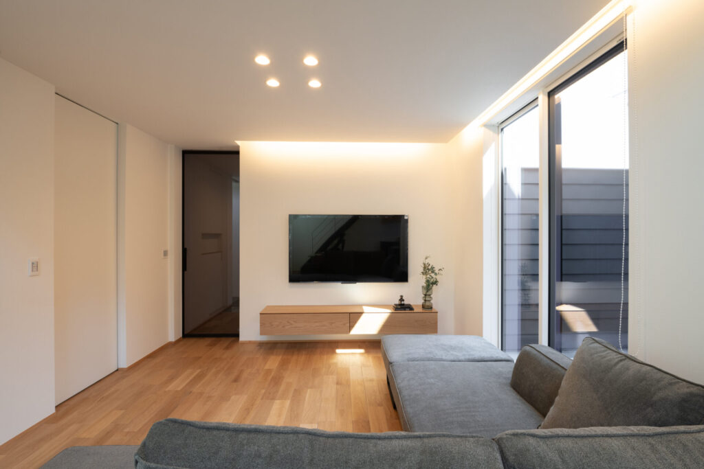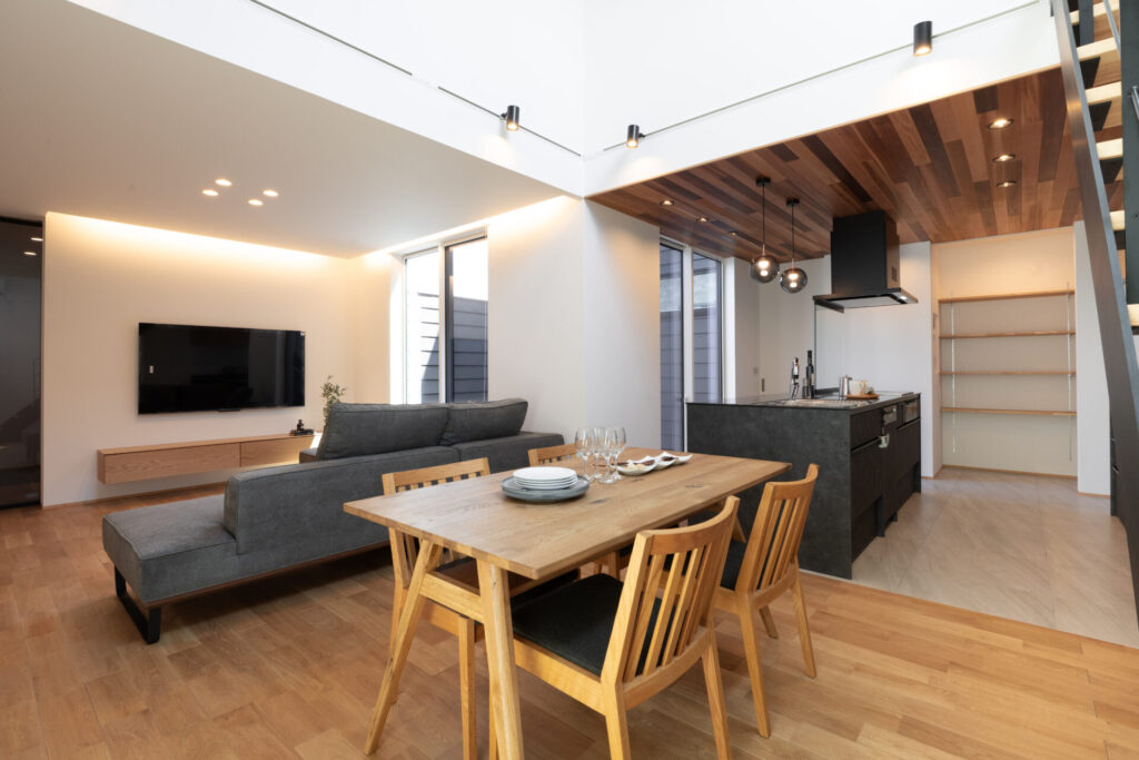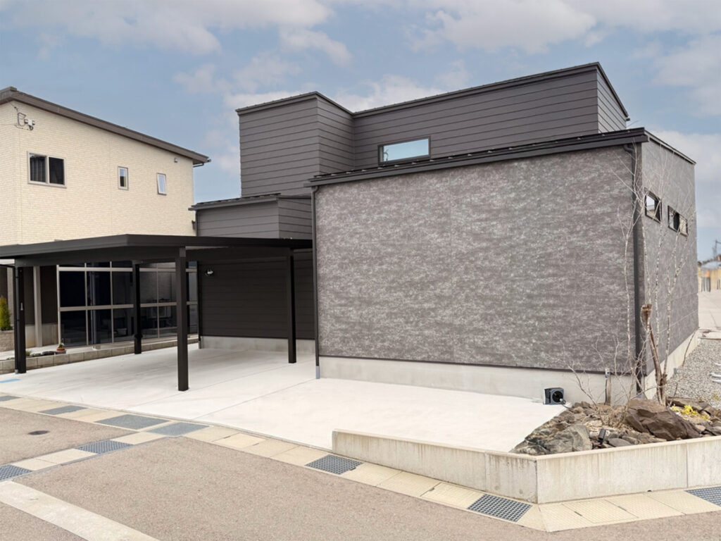 house 【富山市】ZEH住宅・スーパーウォール工法 C値 0.05の家 [温熱性能] 熱損失係数 Q値 1.29 [外皮性能] 外皮平均熱貫流率 UA値 0.34 冷房期の平均日射取得率 ηAC値 0.9 HEAT20 5地域G2 断熱等級6 ZEH + 蓄電池