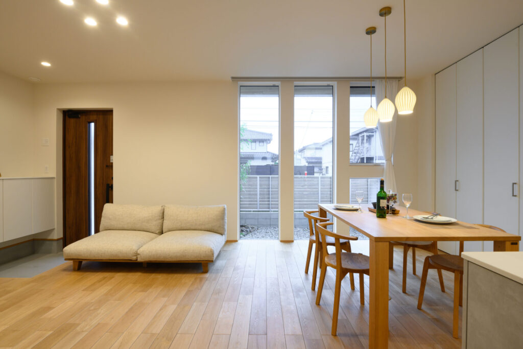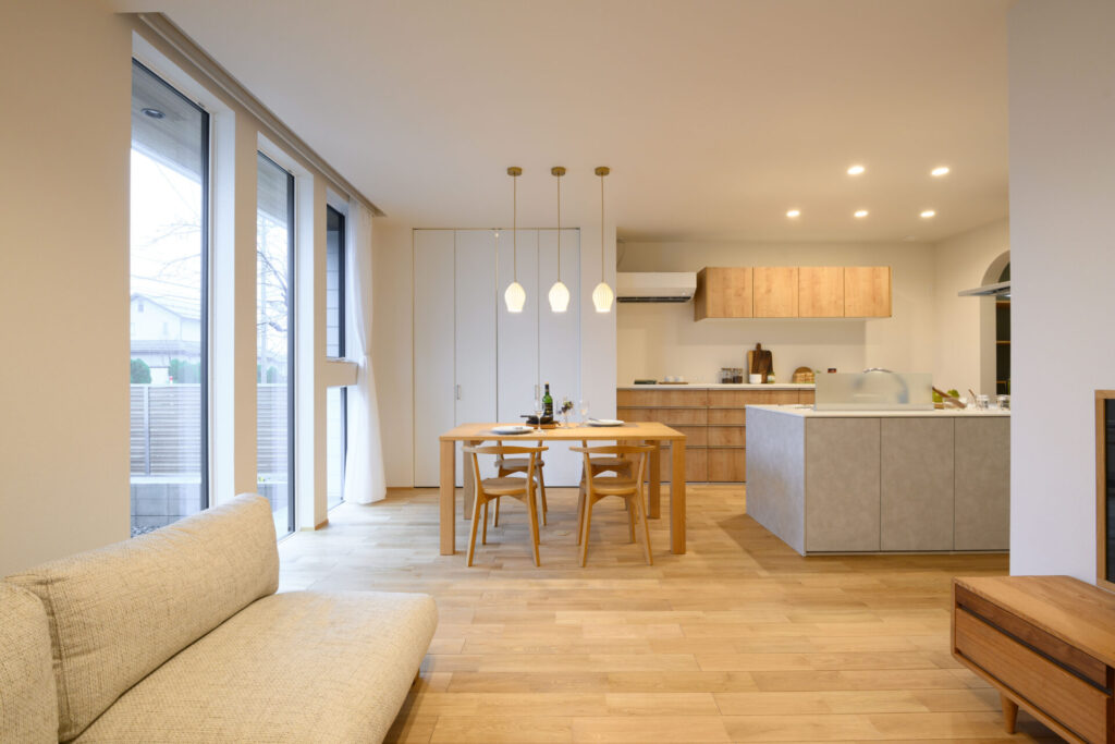 house 【富山市】ZEH住宅・スーパーウォール工法 24坪 平屋の家 [気密性能] 相当隙間面積 C値:0.01㎠/㎡ [温熱性能] 熱損失係数 Q値 1.14 [外皮性能] 外皮平均熱貫流率 UA値 0.28 冷房期の平均日射取得率 ηAC値 0.8 HEAT20 5地域G2 断熱等級6 ZEH 耐震等級3(許容応力度計算)+制震構造